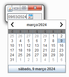 | import javax.swing.*; import java.awt.*; import java.awt.event.*; import thiagoventurelli.dateutils.dateedit.*; public class JavaTeste extends JFrame { public JavaTeste() { JFrame frame = new JFrame("DateUtils - 0.9"); frame.setLocation(500, 200); // ---------------- // Calendario // ---------------- DateEdit dateEdit = new DateEdit( frame ); // ---------------- frame.setContentPane( dateEdit ); frame.pack(); frame.setVisible( true ); frame.setDefaultCloseOperation( JFrame.EXIT_ON_CLOSE ); } public static void main(String[] args) { new JavaTeste(); } } |